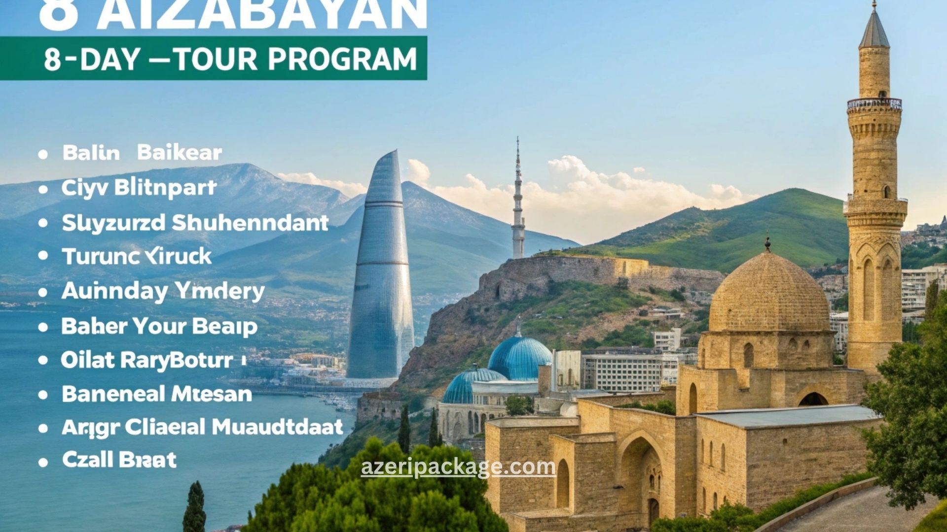 نحن لا نكتفي بإرسال قائمة معالم، بل نرتب باقة خدمة واضحة تشمل منطق التنفيذ اليومي. عند طلب برنامج 8 أيام / ثمانية أيام من azeripackage.com نعمل عادة على: