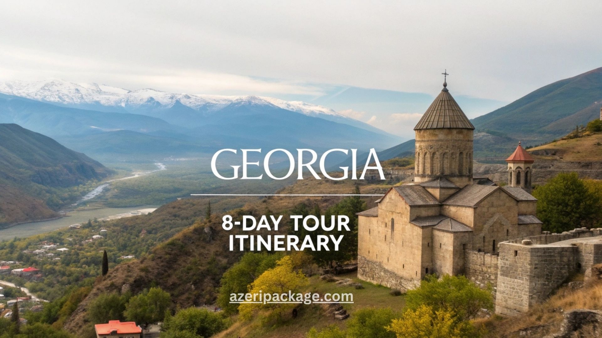 برنامج سياحي في جورجيا 8 ايام (ثمانية أيام) متوازن موسّع للعائلات والأزواج، يجمع تبليسي ومتسخيتا وكازبيجي وكاخيتي مع إضافة بورجومي أو أنشطة هادئة، ضمن جدول يومي مريح وتنظيم احترافي من azeripackage.com.