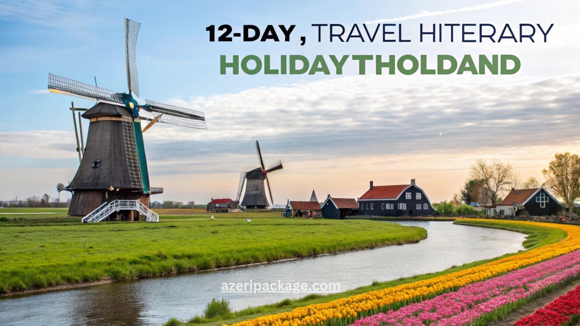 برنامج سياحي في هولندا 12 يوم (اثنا عشر يومًا) بخطة شاملة ومريحة مناسبة للعائلات الكبيرة ومحبي الاسترخاء، مع تنقلات أقل إرهاقًا وجدول يومي مرن وتغطية أوسع للمدن والريف، ومقارنة مختصرة مع 10 و14 يوم من azeripackage.com.